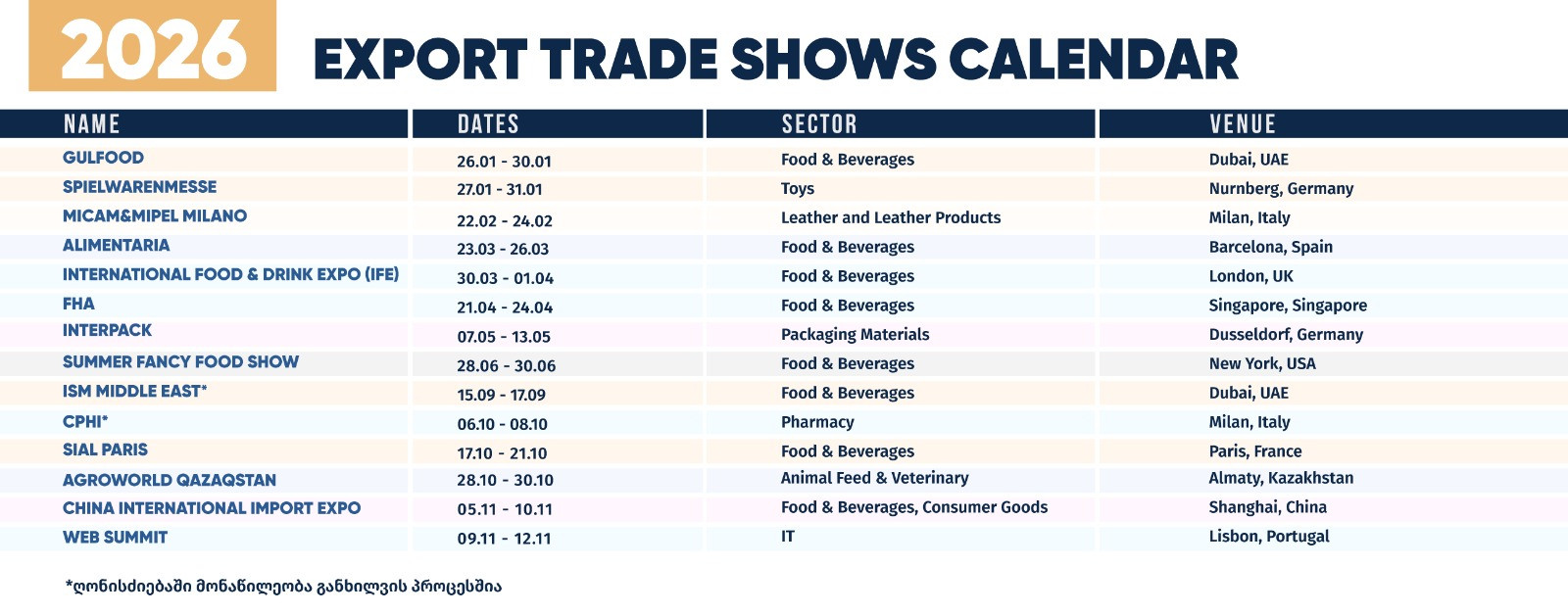 For other important international exhibitions, please see the