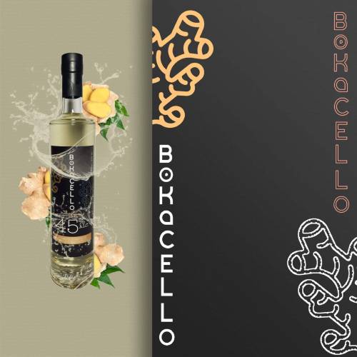 BOKACELLO GINGER, despite its 45% alc., is a mellow liqueur with pleasant and mild ginger burning sensation, walnut and complex citrus flavor, and vanilla finish.