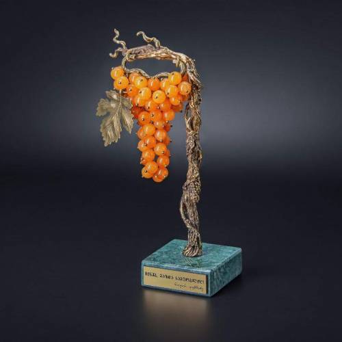 A souvenir made of bronze, marble and natural stones - a vine and a bunch of grapes. The grapes are analogues of the Georgian, endemic variety. It comes with branded packaging and a Georgian or English passport, where interesting information about Georgia and our brand is written.