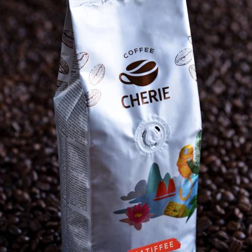 Cherie Natiffee - Blend of Asian Robusta and South American Arabica coffee species. It is identified by its dark roast, Due to its large consistency of Robusta coffee, it is noticeable by its high caffeine content, along with the South American Arabica that adds a strong flavor to it.